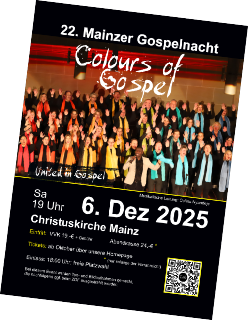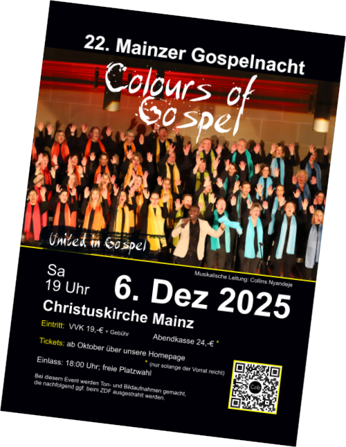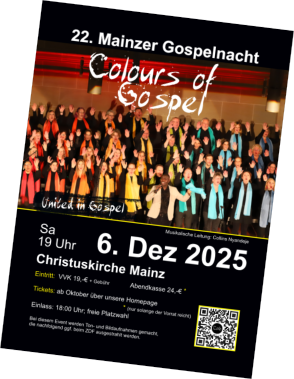 tickets@coloursofgospel.com anfordern, welche am Einlass gegen Vorlage des Ausweises